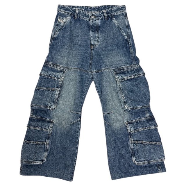 ブランド: DIESEL 商品名: Denim Cargo Pants カラー: インディゴ サイズ: W26 寸法: ウエスト(平置き)42cm股上36cm股下66cmワタリ33cm裾幅32cm 状態: AB 備考:裾上げされている商品です。 ブランド概要----------- デザイナー: グレン・マーティンス(2026年現在) ブランド設立年: 1978年