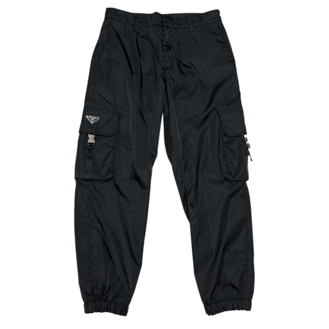 ブランド: PRADA 商品名: RE-Nylon Cargo Pants カラー: ブラック サイズ: 50 寸法:ウェスト(平置)41cm股上27cm股下71cmワタリ35.5cm裾幅15.5-19cm 状態: AB 備考:ウエストサイズ修正あり/裾補正あり
