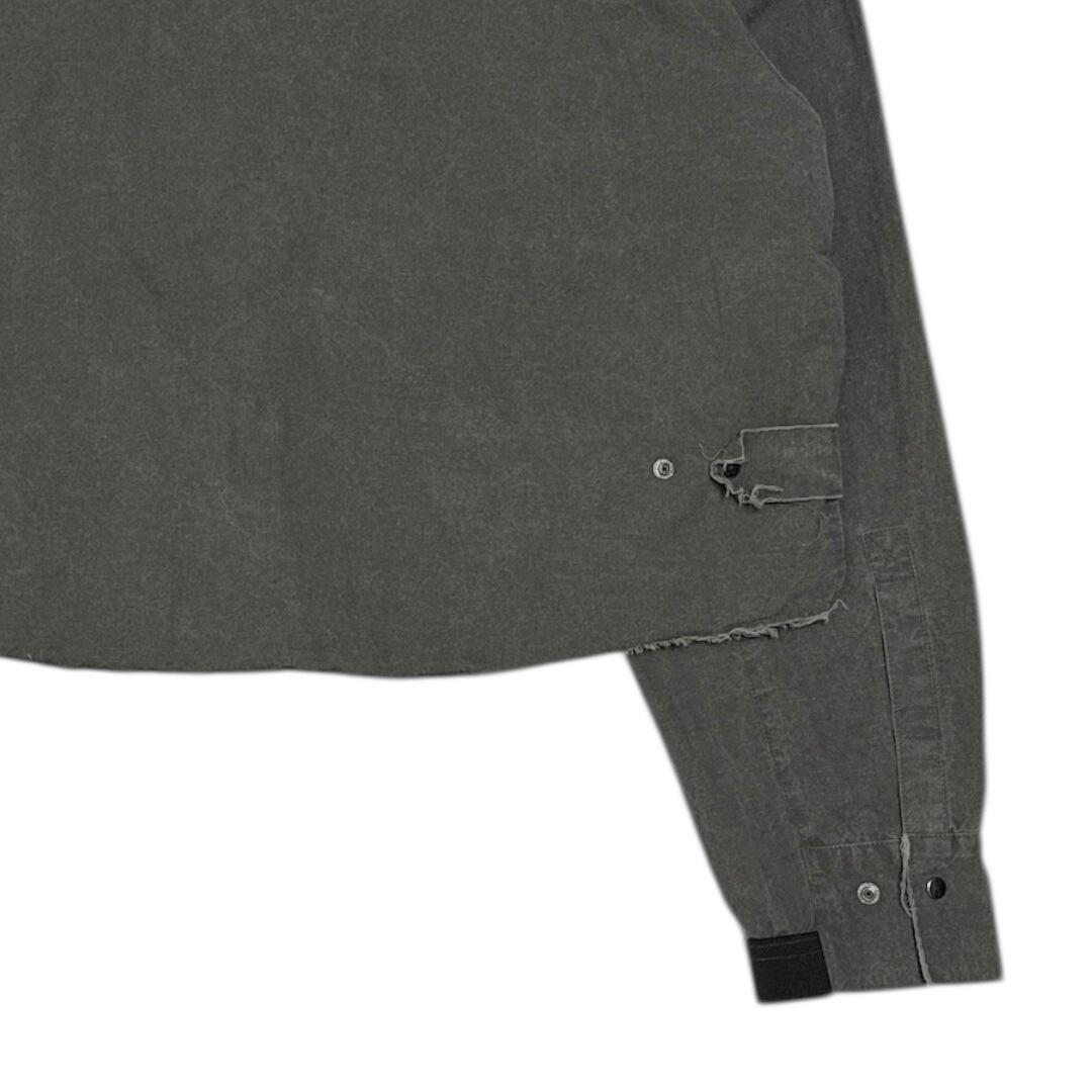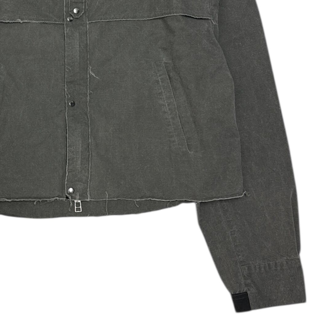 パターンに合わせてカットオフで仕上げている為、着用していくことでステッチの外側がほつれ表情として独特な風合いを生み出してくれるディテール面での楽しさも併せ持ったシャツブルゾンです。