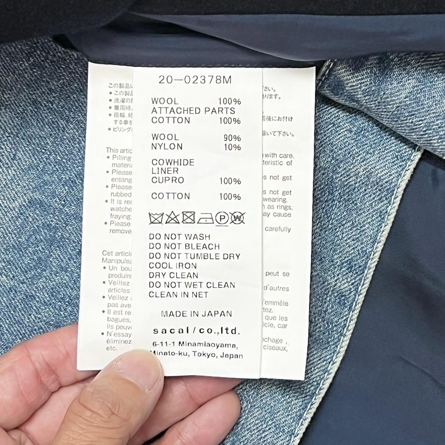 sacai 20AW Denim Docking P-Coat