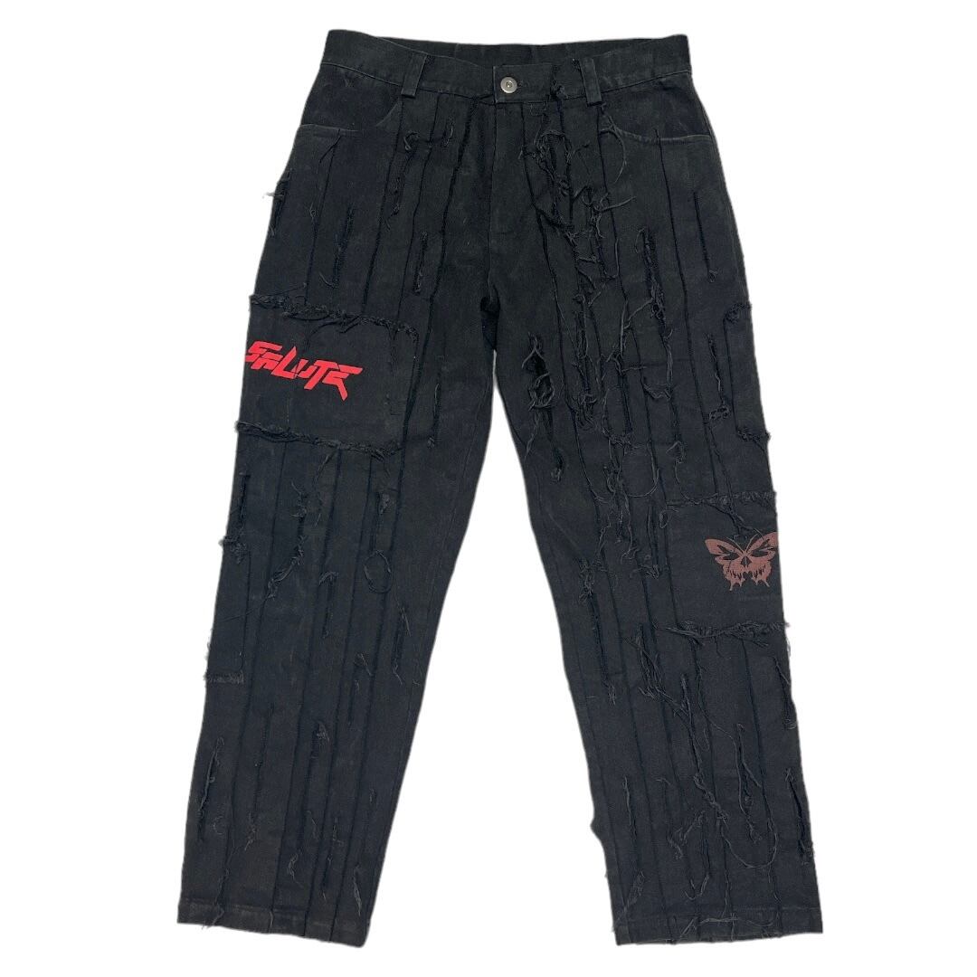 SALUTE Patched Wide Damage Denim Pants